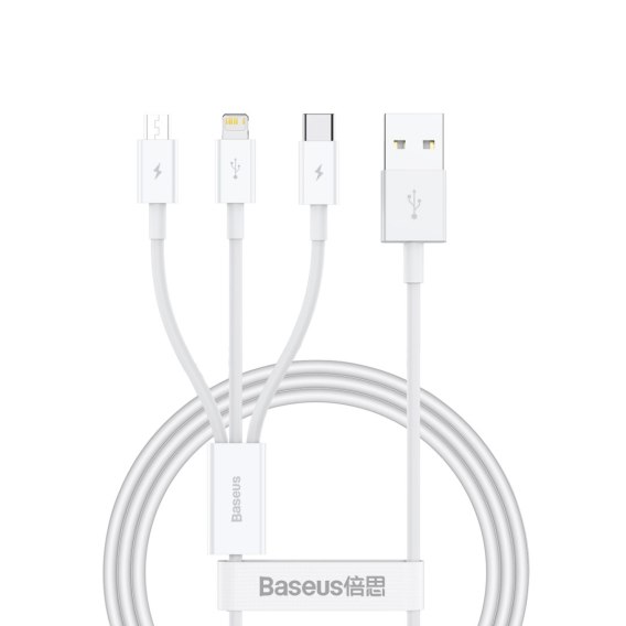 3w1 Kabel przewód Superior Series USB-A - USB-C / Lightning / micro USB 3.5A 1m - biały