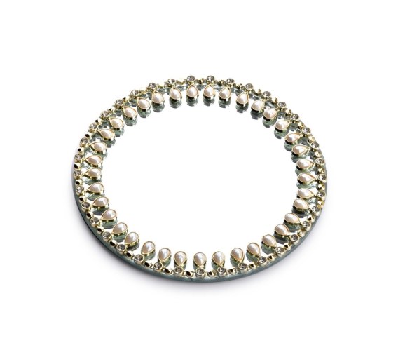 Podstawka dekoracyjna wykonana z lustra i elementów ozdobnych. Świetnie się sprawdzi jako baza do dekoracji stołu. Idealnie nadaje się do trzymania na niej świec. Bogate zdobienia sprawiają, że nada wyrazu każdemu wnętrzu.