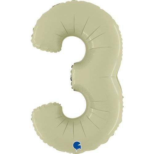 Balon Foliowy Cyfra 3, Satynowa Oliwkowa, 66 cm Grabo