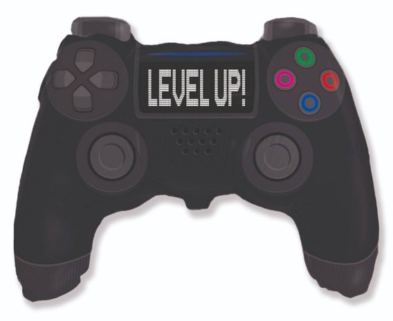 Balon Foliowy w kształcie kontrolera do gier, z nadrukiem Level Up! w stylu Gamerskim.