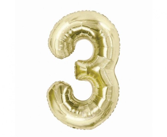 Balon foliowy, cyfra 3, złota, szampańska, 85 cm
