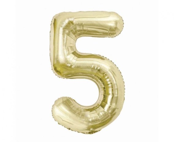 Balon foliowy, cyfra 5, złota, szampańska, 85 cm