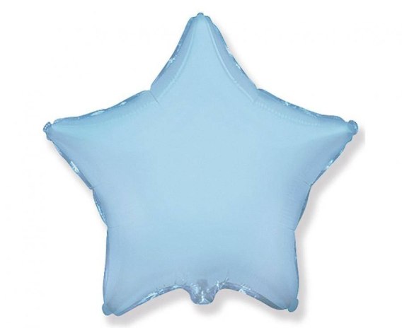 Balon foliowy w kształcie gwiazdki, w kolorze błękitnym.