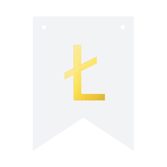 Biała flaga ze złotą literką "Ł" do stworzenia spersonalizowanego baneru tworzącego dowolny napis.