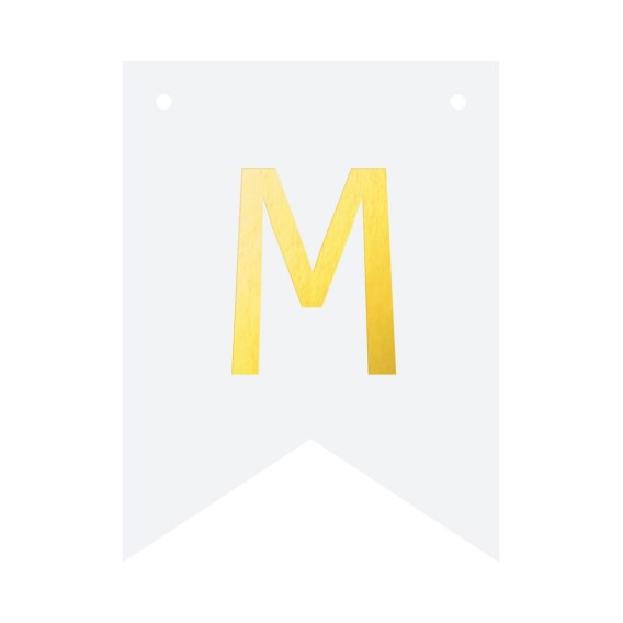 Biała flaga ze złotą literką "M" do stworzenia spersonalizowanego baneru tworzącego dowolny napis.