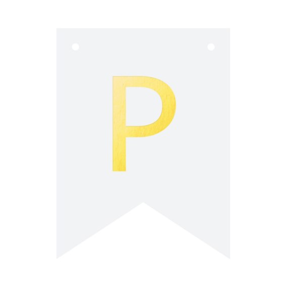 Biała flaga ze złotą literką "P" do stworzenia spersonalizowanego baneru tworzącego dowolny napis.