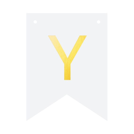 Biała flaga ze złotą literką "Y" do stworzenia spersonalizowanego baneru tworzącego dowolny napis.