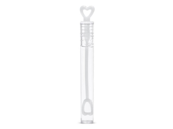 Bańki mydlane Serduszko, białe buteleczki z serduszkiem, zawierają płyn do baniek.