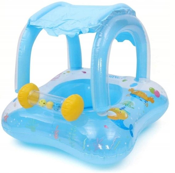 Pontonik dla dzieci z daszkiem i otworami na nóżki  wykonany z wysokiej jakości tworzywa PCV gwarantującego wytrzymałość
