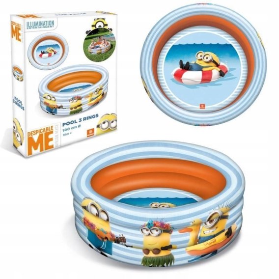 Dmuchany basen z motywami z Minionków idealny do pluskania się w wodzie.