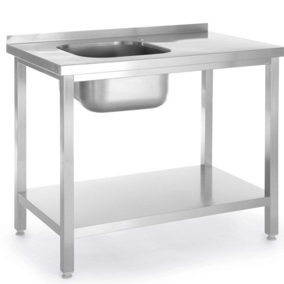 Stół ze zlewem marki Hendi sprawdzi się w restauracjach, barach, hotelach, szpitalach czy laboratoriach. Zlew umieszczony jest po LEWEJ stronie stołu Jego wytrzymała konstrukcja wykonana została ze stali nierdzewnej AISI 430. Przedmiot posiada zlew, półkę, otwory na syfon i baterię. Zlew tłoczony został z jednego arkusza stali i wspawany bezszczelinowo w blat. Komora zlewu ma wymiary 400 x 400 x (H) 250 mm. Standardowy otwór w dnie do syfonu wynosi 50 mm, miejsce na zamocowanie baterii 30 mm. Rant zabezpieczający ścianę przed zabrudzeniem ma szer. 40 mm. Półka nie ma możliwości regulacji - wysokość od podłogi do jej dolnej krawędzi wynosi 160 mm. Nogi wykonane zostały z profili 40 x 40 mm. Skręcana konstrukcja mebla umożliwia łatwe jego złożenie, magazynowanie i przewożenie. Stopki są regulowane +25/-5 mm. Dopuszczalne obciążenie blatu wynosi ok. 70 kg/m2.