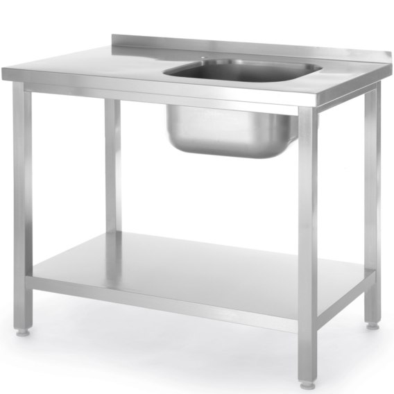 Stół ze zlewem marki Hendi sprawdzi się w restauracjach, barach, hotelach, szpitalach czy laboratoriach. Zlew umieszczony jest po PRAWEJ stronie stołu Jego wytrzymała konstrukcja wykonana została ze stali nierdzewnej AISI 430. Przedmiot posiada zlew, półkę, otwory na syfon i baterię. Zlew tłoczony został z jednego arkusza stali i wspawany bezszczelinowo w blat. Komora zlewu ma wymiary 400 x 400 x (H) 250 mm. Standardowy otwór w dnie do syfonu wynosi 50 mm, miejsce na zamocowanie baterii 30 mm. Rant zabezpieczający ścianę przed zabrudzeniem ma szer. 40 mm. Półka nie ma możliwości regulacji - wysokość od podłogi do jej dolnej krawędzi wynosi 160 mm. Nogi wykonane zostały z profili 40 x 40 mm. Skręcana konstrukcja mebla umożliwia łatwe jego złożenie, magazynowanie i przewożenie. Stopki są regulowane +25/-5 mm. Dopuszczalne obciążenie blatu wynosi ok. 70 kg/m2.