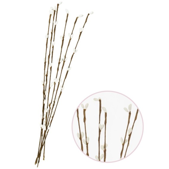Bazie dekoracyjne w kolorze białym to delikatna i stylowa ozdoba wiosenna. Elastyczne gałązki na druciku umożliwiają dowolne kształtowanie, dzięki czemu doskonale sprawdzą się w stroikach, bukietach lub jako samodzielna dekoracja.
