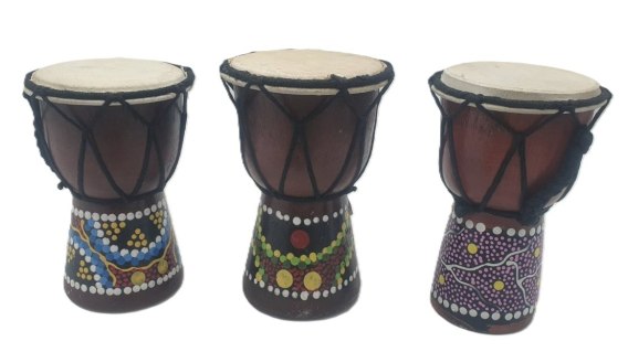 Bęben (djembe, bongos) wykonany na wyspie Bali w Indonezji. Wysokość 15cm