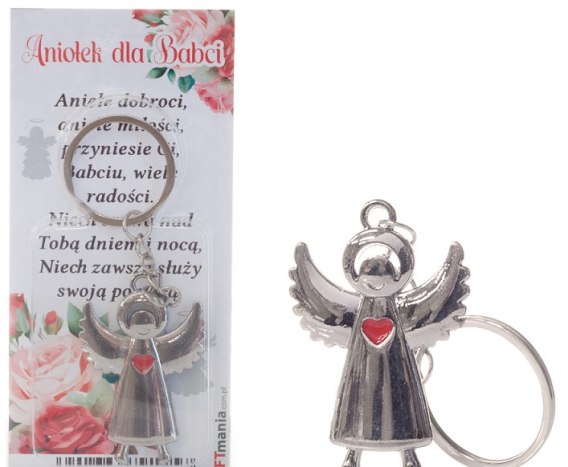 Breloczek do kluczy w ozdobnym opakowaniu - aniołek z serduszkiem "Aniołek dla Babci"