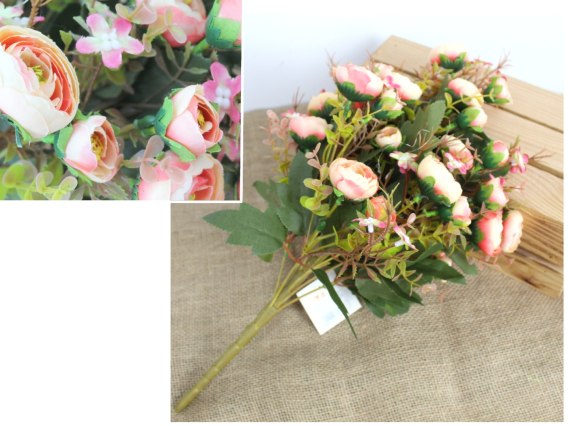 Bukiet PIWONIA z dodatkami wys. 46 cm, 13 łodyg (kwiat 4x2,5 cm) KORALOWA WT-178A
