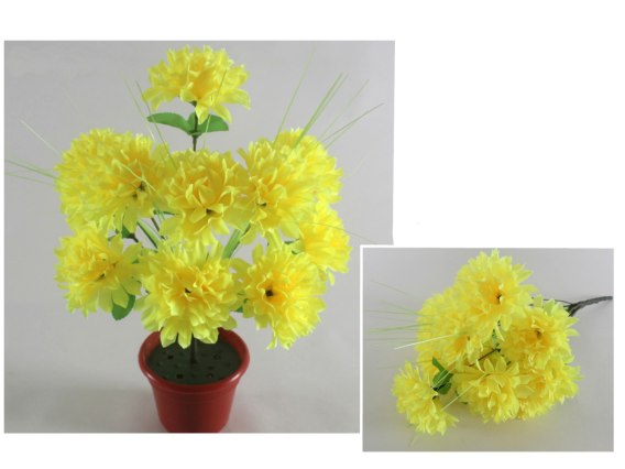 Bukiet sztuczny CHRYZANTEMA z dodatkiem trawy 12 łodyg 40cm żółta 2szt KAO-101B