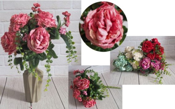 Bukiet sztuczny PIWONIA AKSAMITNA z bluszczem 10 łodyg wys. 38 cm, kwiat 10 cm EK-112