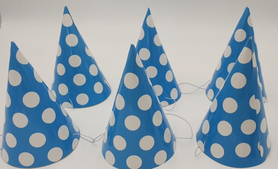 • Czapeczki papierowe błekitne kropki 6szt.