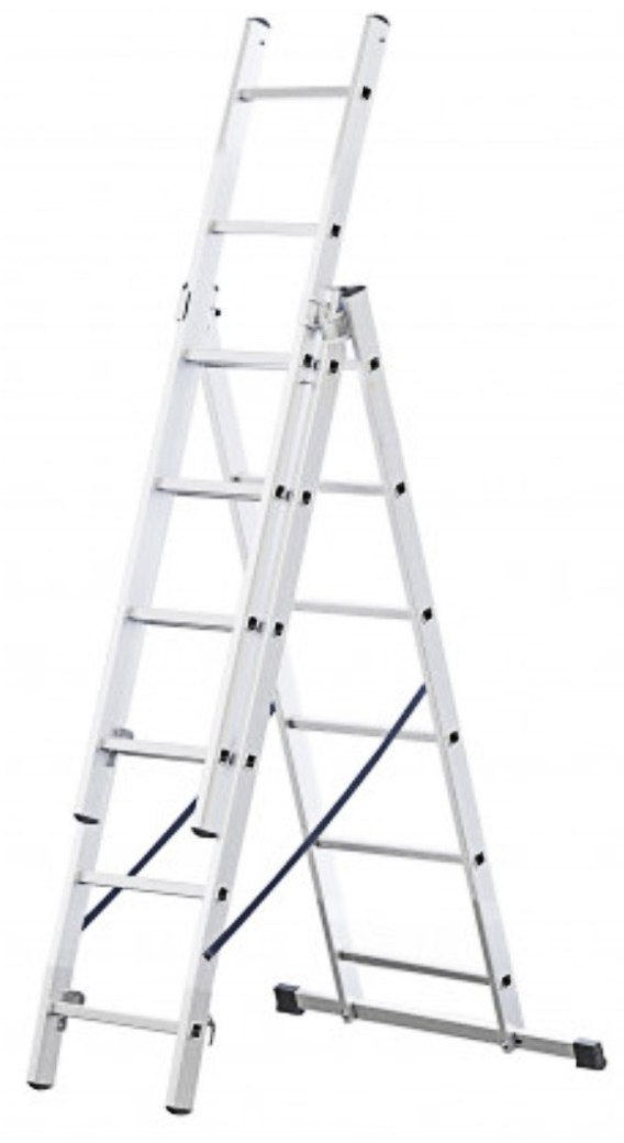 Drabina aluminiowa, trzyelementowa, 6 stopni (wytrzymałość: 150 kg)