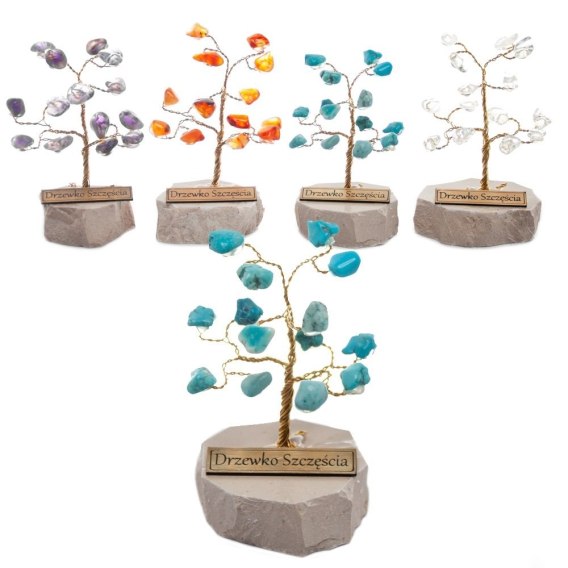 Drzewko szczęścia. Ok. 15 kamieni szlachetnych. Rróżne rodzaje. Średnica 5 cm wys. 7 cm.