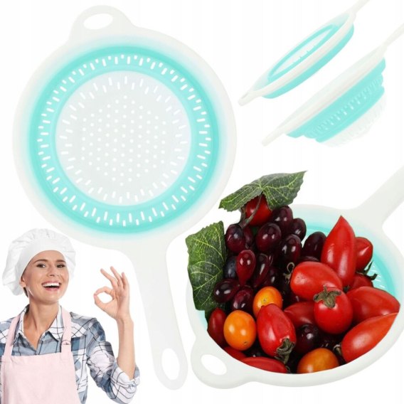 Durszlak składany z rączką cedzak sitko ociekacz silikonowy z uchwytem S5 PID0979