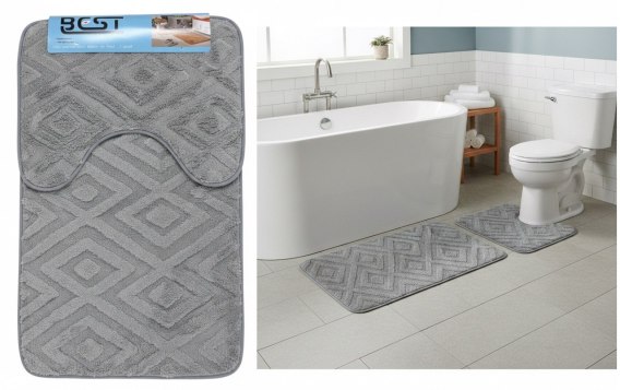 Dywanik kpl łazienkowy (80x50 cm) 2 el. ROMB SZARY DYW-50507C