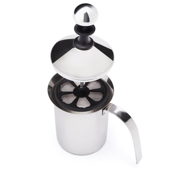 Ręczny mechanizm spieniania mleka lub śmietanki jest skuteczny i szybki. Pokrywka natomiast zabezpiecza przed rozchlapywaniem ubijanego produktu. Błyskawicznie przygotujesz mleczne dodatki do kawy.