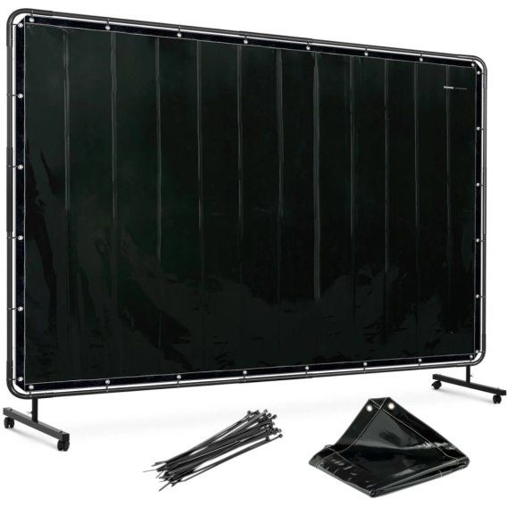 • Ekran kurtyna spawalnicza ochronna z ramą na kółkach 240 x 180 cm - czarna
