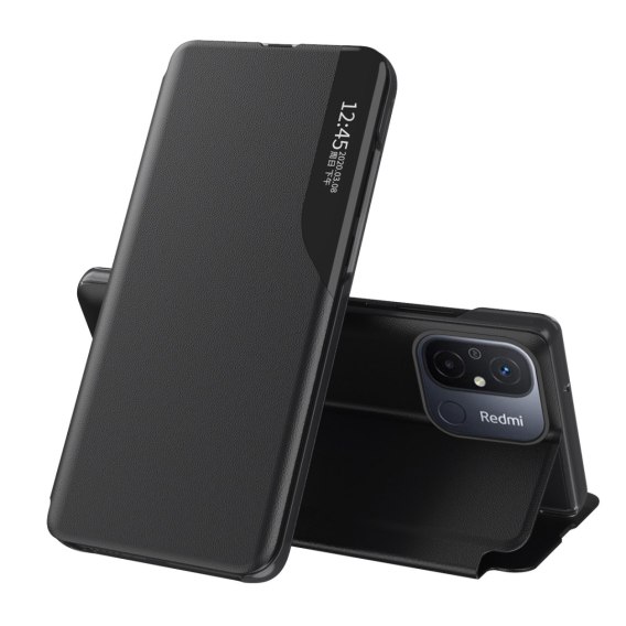 - - Etui pokrowiec z klapką i podstawką do Xiaomi Redmi 11A / Poco C55 / Redmi 12C Eco Leather czarne