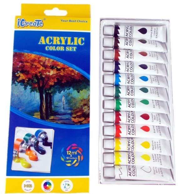 Zestaw farb akrylowych o pojemności 12 ml. Wyprodukowane z najlepszej jakości pigmentów. Żywe kolory, szybki czas schnięcia - wszystko to w atrakcyjnej cenie. Idealny dla studentów, uczniów, amatorów i profesjonalistów.