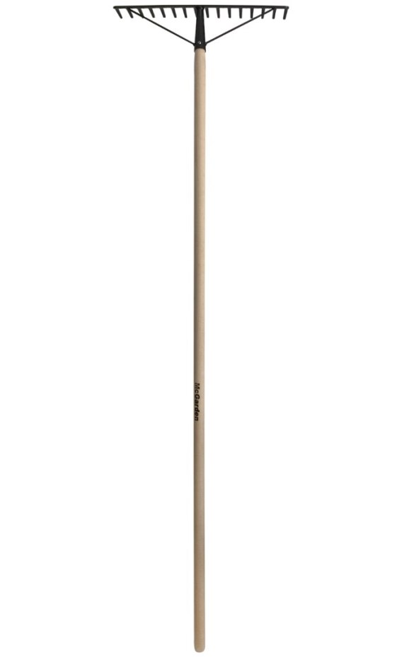 Grabie 16 zębowe - wzmacniane, do zagarniania, do wyrównywania ziemi, stal gatunkowa do 43 HRC, trzon drewniany (bukowy) typ P-150