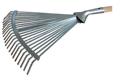 Grabie do liści z taśmy regulowanej, z drewnianym trzonkiem, wykonane z wysokiej jakości materiałów.