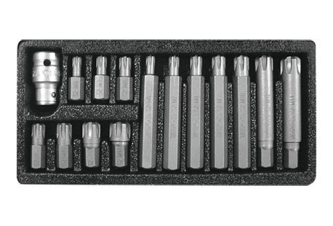 Profesjonalny zestaw bitów, s?u??cy do odkr?cania ?rub specjalnych typu: ribe. Ró?norodno?? bitów zapewnia mo?liwo?? wykonania wielu prac w specjalistycznych serwisach mechanicznych i samochodowych. Ko?cówki posiadaj? d?ugo?? 30 mm, mocowane w uchwycie sze?ciok?tnym 10 mm, dostosowanym do wspó?pracy z grzechotk? 1/2.Zestaw wykonany z najwy?szej jako?ci stali stopowej narz?dziowej S2, która charakteryzuje si?: wysok? twardo?ci? HRC 58-62 jednolit?, drobnoziarnist? struktur? materia?u odporno?ci? na skr?canie wysokim momentem dokr?cania - 21,8 Nm doskona?ym zahartowaniem.Top of Form 1