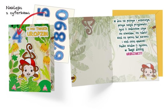 Karnet Urodziny dziecięce wymienne cyferki, małpka | DKP-047