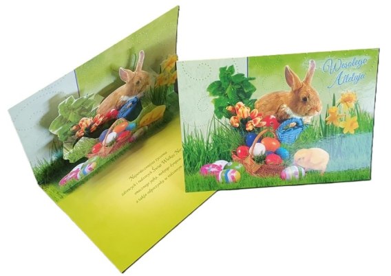Karnet+koperta duży przestrzenny Wielkanoc króliczek