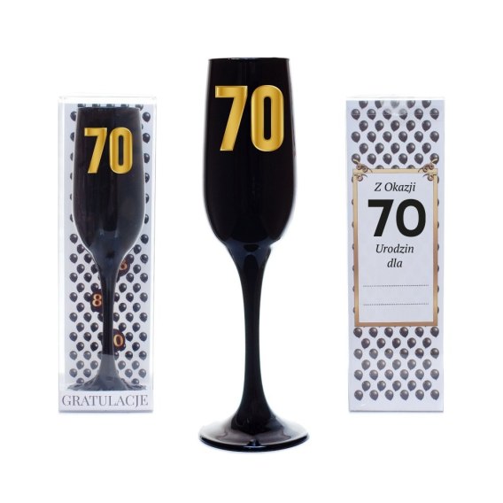 Kieliszek urodzinowy do szampana czarny w ozdobnym opakowaniu - Z Okazji 70 Urodzin dla...