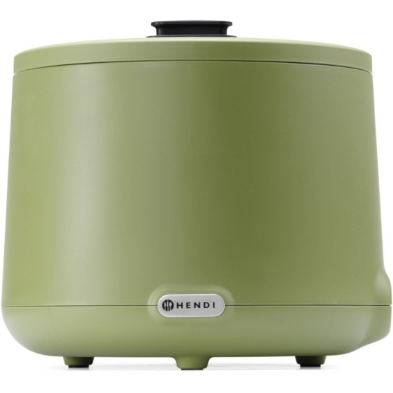 Kociołek elektryczny marki Hendi pozwala utrzymać w cieple zupę. Zaprojektowany został przez holenderskiego projektanta Roberta Bronwassera, posiada nowoczesną obudowę i jest dostępny w 3 stylowych kolorach. Posiada funkcję zapamiętywania ostatniej ustawionej temperatury. Urządzenie jest proste w obsłudze, wystarczy podłączyć, napełnić wodą pojemnik a kociołek utrzyma zupę w stałej, idealnej temperaturze. Obudowę kociołka wykonano z polipropylenu odpornego na wysoką temperaturę. Demontowany wkład na zupę ma pojemność 8 l i wykonany został ze stali nierdzewnej AISI 304. Grzałkę wykonano ze stali nierdzewnej AISI 304. Pokrywa ze szkła hartowanego wyposażona została w izolowany uchwyt, wycięcie na chochlę oraz aluminiowy zawias. Specjalna dwuczęściowa konstrukcja pokrywy redukuje utratę ciepła przy otwieraniu, równocześnie zachowując optymalną higienę pracy. Na pokrywie umieszczono uchwyt (holder) na etykietę z nazwą dania. Elektroniczny panel sterowania wyświetla czas pracy, temperaturę zadaną oraz aktualnie ustawioną temperaturę. Temperaturę można regulować w zakresie od 35 do 85deg;C co 1deg;C. Urządzenie nie jest przeznaczone do gotowania, a jedynie do utrzymywania ciepła.