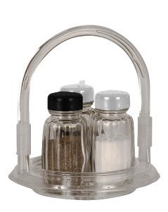 Zestaw pojemników na przyprawy to zdecydowanie obowiązkowa pozycja we wszystkich barach, restauracjach jak również domowych jadalniach. Trzy szklane pojemniki wyposażone w plastikową, szczelną, odkręcaną pokrywkę, dzięki której istnieje możliwość ponownego uzupełnienia zawartości a czyszczenie jest zdecydowanie łatwiejsze. Zakrętka posiada małe otworki na powierzchni zabezpieczające przed przesypaniem przypraw. Zestaw zawiera zarówno pojemniki na przyprawy sypkie, jak również na przyprawy płynne. Całość umieszczona została na podstawce wraz z uchwytem ułatwiającym przenoszenie.
