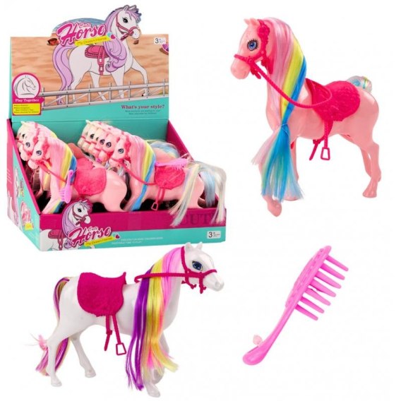 Koń z tęczową grzywką i grzebieniem 20 x 20cm A-1185
