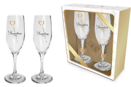 Kpl 2 kieliszków do szampana SZCZĘŚLIWA Z NIM / SZCZĘŚLIWY Z NIĄ