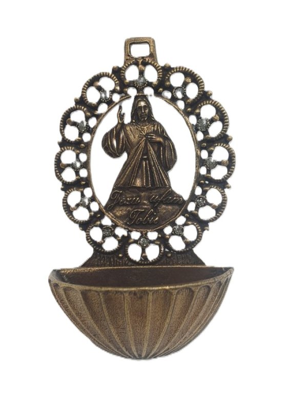 Kropielnica metalowa na wodę święconą Jezu ufam Tobie