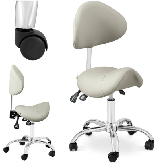 Krzesło kosmetyczne siodłowe z oparciem obrotowe regulowane MANNHEIM GREY szare