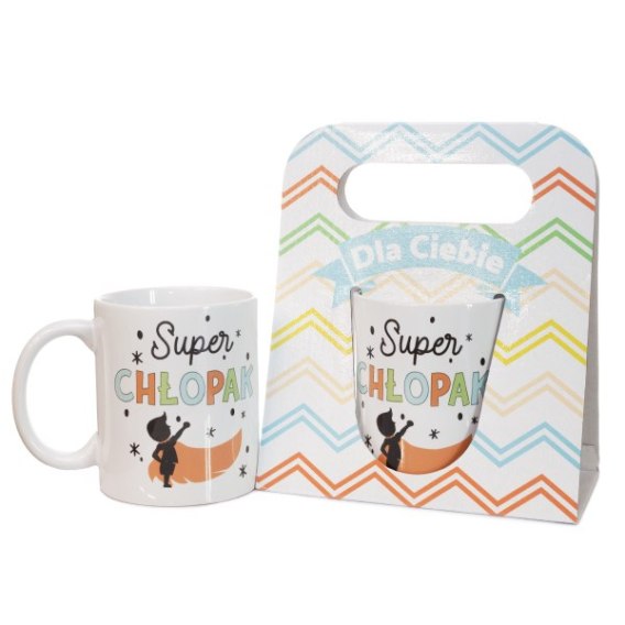 Kubek ceramiczny w ozdobnym opakowaniu z napisem "Super Chłopak"