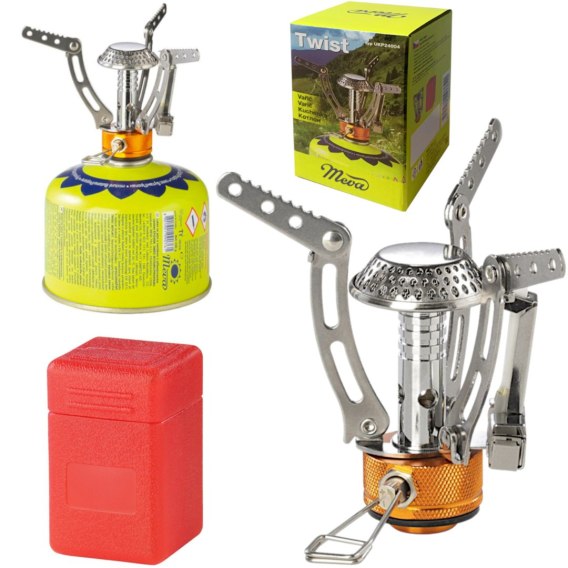 Wysokiej jakości kuchenka turystyczna TWIST renomowanej marki MEVA Czechy to doskonałe narzędzie do przygotowywania posiłków w terenie. Kuchenka posiada trzy szeroko rozkładane ramiona na których można używać patelni lub garnków o średnicy do 20cm i wadze do 5kg. Kuchenka kempingowa TWIST może być zasilana kartuszami gazowymi z zaworem z gwintem 7/16 cala. Palnik wyposażony został w automatyczny zapalnik uruchamiany przyciskiem. Precyzyjne i solidne wykonanie kuchenki daje gwarancję bezproblemowej pracy w trudnych warunkach polowych. Lekka składana konstrukcja zapakowana w niewielkie etui z łatwością zmieści się w plecaku bez obciążania ekwipunku.