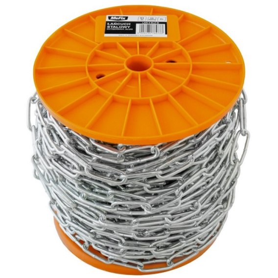 Łańcuch gospodarczy długoogniwowy bocznie zgrzewany , ocynkowany elektrolitycznie ,"D-2" DIN 5685 C - na plastikowej rolce ,