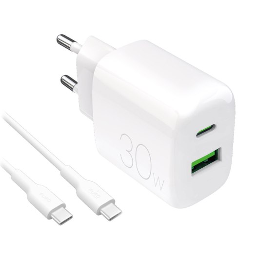 Ładowarka sieciowa USB-A USB-C z kablem USB-C 30W 1.2m - biała