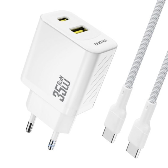 to kompaktowa i wydajna ładowarka sieciowa z mocą do 35 W, która umożliwia szybkie i bezpieczne ładowanie wielu urządzeń. Wyposażona w dwa porty - USB-C oraz USB-A - pozwala na jednoczesne podłączenie różnych sprzętów, co zwiększa jej funkcjonalność w codziennym użytkowaniu. W zestawie znajduje się kabel USB-C o długości 1 m, wspierający szybkie ładowanie i transfer danych. Biała kolorystyka, lekka konstrukcja i kompaktowe wymiary sprawiają, że ładowarka idealnie nadaje się zarówno do domu, biura, jak i podróży.
