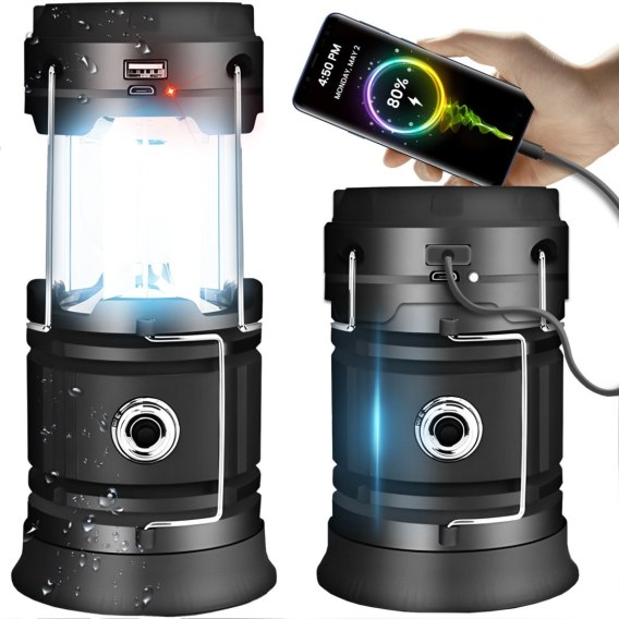 Lampa akumulatorowa turystyczna solarna z powerbankiem składana 6 LED