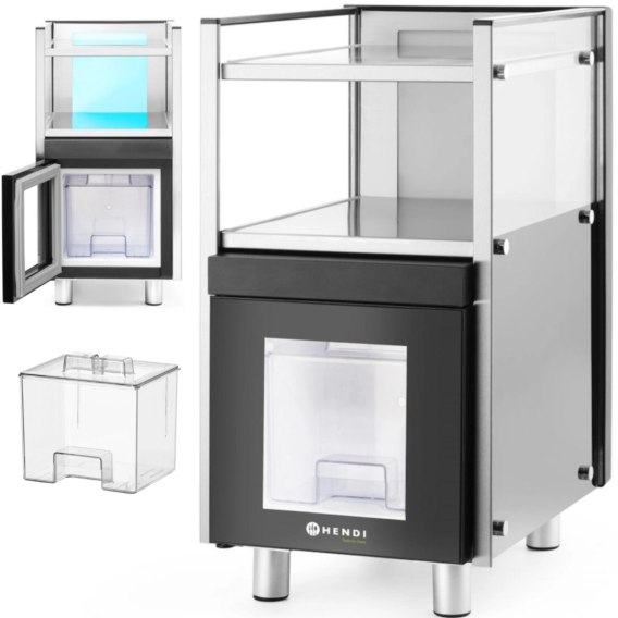 Lodówka marki Hendi sprawdzi się do serwowania kawy z zawsze świeżym, schłodzonym mlekiem. Może być połączona z każdym ekspresem automatycznym. Wyposażona została w dwie podgrzewane półki do filiżanek w ramę wykonaną ze stali nierdzewnej AISI 430. Pojemnik na mleko wykonany został z SAN o pojemności 3.5 l. Przeszklone drzwi wykonano z podwójnego szkła hartowanego, obudowę lodówki z ABS z panelami ze szkła hartowanego. Wejście na rurkę ssącą do mleka znajduje się z boku urządzenia, do bezpośredniego połączenia z każdym ekspresem automatycznym. Oświetlenie LED posiada 7 kolorów. Urządzenie wyposażono w 3 niezależne włączniki, dla oświetlenia LED, dla chłodziarki, dla podgrzewacza. Czynnik chłodniczy wykorzystany w lodówce to przyjazny dla środowiska R600A. Temperaturę można ustawić w zakresie 0-10deg;C.